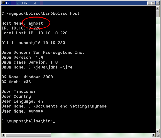 From the belise/bin directory, run the host utility: